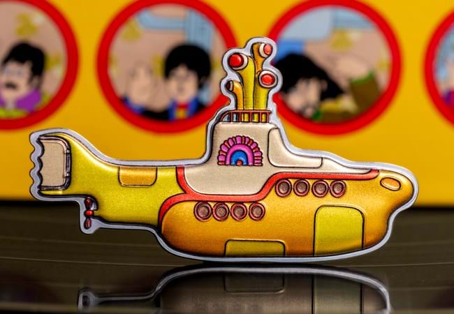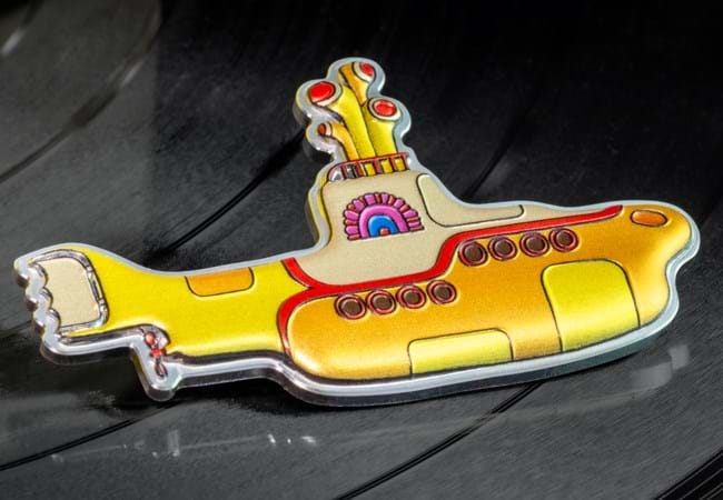 - Minted in the shape of the Yellow Submarine – 58mm wide x 34mm high